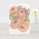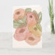 This 5x7 floral greeting card features a modern one-line floral illustration layered over soft watercolor washes in blush pink, peach, and sage green. The continuous line drawing creates a minimalist yet expressive bouquet, blending contemporary style with a warm, organic feel.