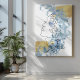 This captivating one line side face art tells a dreamy story through minimal lines and layered textures. A delicate butterfly rests over the eye, while soft blue watercolor flowers bloom behind the figure. Fluid blue paint stains add depth, complemented by elegant gold brush strokes on the upper right and lower left corners. A modern canvas print that evokes grace, transformation, and quiet beauty.