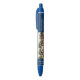 Very nice blue, or black ink pen. I will be buying more. The print was fine. I can easily see the print. The flowers look great.