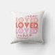 One Love Teacher Pink Modern Personalized Name Throw Pillow Cushion features the text "one loved teacher" in modern pink script typography accented with love hearts and personalized with your custom name. Perfect for your favorite teacher for teacher appreciation, birthday, Christmas, holidays and more. Designed by Evco Studio www.zazzle.com/store/evcostudio