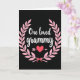 This card shows a black background with a soft pink laurel wreath curving in a neat circle. In the center, the words “One loved grammy” appear in white, flowing cursive-style lettering, standing out clearly against the dark backdrop. The wreath feels like a gentle hug around the message, and it keeps your eyes focused right where it matters. Just below the text sits a coral heart with a small arrow going through it, giving a simple sign of love ❤️. At the bottom of the wreath, a brighter pink bow is tied like a little finishing touch. The colors are calm and sweet, and the whole design feels caring without trying too hard. It’s meaningful to give because it says “you’re loved” in a direct way that many grandmas will feel right away 🥰. Hope it helps you share Valentine’s Day sentiments with someone special.