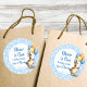 One lucky duck blue gingham 1st birthday party thank you favor stickers template , cute mallard duck with a party hat and balloons with soft pastel blue gingham border for boys 1st birthday party personalized favor stickers