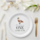 This classic "one lucky duck" boy's 1st/first birthday paper plate features a wild duck/mallard. Personalize for your needs. You can find more matching products at my store.