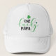 This image features the phrase "One Lucky Mama" in a combination of bold and cursive fonts. The word "lucky" is written in a large, elegant green cursive script, while "ONE" and "MAMA" are in bold black letters. Above the word "ONE" is a green shamrock, and there is a small green heart next to the word "lucky." The design is playful and celebratory, making it a perfect choice for a trucker's hat, especially for occasions like St. Patrick's Day or to express a sense of gratitude and good fortune.
