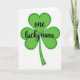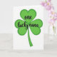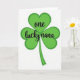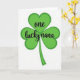 This card features a bright lime-green three-leaf shamrock centered on a white background, with heart-shaped leaves arranged evenly for a balanced look. A slightly darker green outline traces each leaf and the curved stem, giving the shamrock a gentle, sticker-like depth. Across the shamrock, black flowing lettering reads “one lucky nana,” turning the classic lucky symbol into a sweet nod of affection 💚. The word “one” sits over the top leaf, “lucky” stretches along the left leaf, and “nana” follows the right leaf, so the message feels tucked right into the greenery. The smooth, curling letterforms add a soft, romantic warmth, like a fond note passed between family members or close friends ☘️. With no extra scenery, the open white space keeps the focus on the shamrock and the words, making the design feel airy and simple. The black text stands out clearly against the green leaves, while the darker outline keeps each edge crisp and easy to see. The stem tilts slightly downward from the center, ending in a neat point below the leaves.