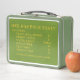 This is a standard metal lunchbox that appears to work just fine. We designed this box ourselves with an uploaded photo and custom text on the front and back. It looks absolutely beautiful except the front of the lunchbox is not centered like it shows in the photo. The print borders don't align with the inset flat part of the box where the preview photo online showed it perfectly centered in there. The back looks nice and centered though.