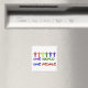 Rainbow figures link arms and stand on the words: "One World One People" to get the message out that world peace starts with us. We must get along with each other before we can have peace.