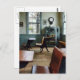 Designs by Susan Savad -- Design of a one room schoolhouse with its old-fashioned desks and octagonal pendulum clock.