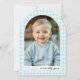 One silly goose, blue gingham boy's first birthday invitation