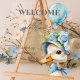 the story of a joyful milestone— very first birthday, a celebration wrapped in love, warmth, and a touch of whimsy. The design centers around a charming goose, lovingly illustrated as if plucked from the pages of a beloved children’s book. He’s not just any goose—He’s “one silly goose,” dressed for a party in a striped hat and floral crown, proudly clutching a Blue balloon. His expression is wide-eyed, innocent, and full of personality—just like a one-year-old discovering the world.