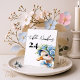 the story of a joyful milestone— very first birthday, a celebration wrapped in love, warmth, and a touch of whimsy. The design centers around a charming goose, lovingly illustrated as if plucked from the pages of a beloved children’s book. He’s not just any goose—He’s “one silly goose,” dressed for a party in a striped hat and floral crown, proudly clutching a Blue balloon. His expression is wide-eyed, innocent, and full of personality—just like a one-year-old discovering the world.