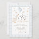 One Silly Goose Boys 1st Birthday Blue Gingham Invitation