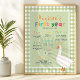 This cute 1st birthday milestone poster features one silly goose with a party hat, with a green gingham border, and can be personalized with details of your child’s first year in colorful typography. Details include first favs, height, weight, number of teeth, and first achievements. The perfect floral farm design to celebrate your little one's first year!