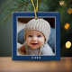 One Square Photo plus Year - minimal navy border Ceramic Ornament