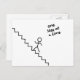 "one step at a time" stick man on stairs postcard