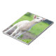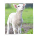 One white newborn lamb standing in green grass notepad
