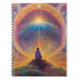 In tune with the source. This spiral notebook depicts a man centered on a rock, harmonizing with the radiant Son, surrounded by a vibrant kaleidoscope of holy light. For channeling divine inspiration, scripture notes, and spiritual reflections.