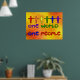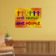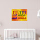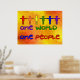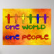 Rainbow figures link arms and stand on the words: "One World One People" to get the message out that world peace starts with us. We must get along with each other before we can have peace.