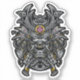 This image depicts a stylized samurai mask, inspired by the oni, a Japanese demon or ogre. The mask is primarily metallic, with intricate details and a menacing expression. The eyes are narrowed, and the mouth is open in a ferocious snarl. A cherry blossom is prominently displayed on the forehead, adding a touch of contrast and symbolism. The mask is framed within a circular design, further emphasizing its powerful presence.