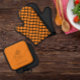 Orange outline picture kitchen Oven Mitt & Pot Holder Set. Custom printed Oven Mitt & Pot Holder Set with funny phrase I like onion and garlic. This is personalized Holders with black image.