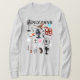 This is a review for a licensed-by-Disney long-sleeved deep-red tee shirt with design showing Mickey Mouse, Minnie Mouse, Donald Duck, Daisy Duck, Goofy, and Pluto. I customized the shirt by adding text with the names of each character.
