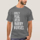My 11 yo wore adult XL (5’7” 165#). The 8yo is small framed. She wore adult small and tied it in the back. Grandma wore adult large with long sleeve shirt underneath. Tall girl adult medium. Dark haired male adult large. Good quality dark Heather gray, Gildan brand shirt. -it was next up from basic choice and cost about $20 per shirt. Not too thick or thin. Washed and dried well, no major shrinkage. Not see-through. Can wear a bra under it fine. Screen print is just as shown and well done, front and back.