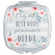Only the best moms get promoted to Meema! Our pretty floral compact mirror features the quote in handwritten style typography surrounded by blush pink watercolor flowers on a subtle gray striped background. A sweet gift for new grandmothers, Mother's Day or grandmas to be.