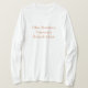 I love this shirt. I had written to the artist asking her if this picture was available on a shirt, and she wrote me back telling me where I could find the shirt. These shirts can be custom made to have a different saying. I loved this saying and went with it. The artist wrote me back later to tell me that she had seen my order go through. How's that for service? Pretty special. It's just as displayed. Perfect!