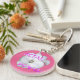 nice thick acrylic. fun little keychain add on. Would also make a fun name tag for water bottle or lunch box, backpack. cute design came out perfect.