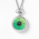 Art Deco 12-point compass rose with the look of black onyx against a peridot green glass-textured background - digital art