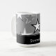 Enjoy your morning coffee with this modern mug design featuring an onyx star explosion, steel gray textured background with an ebony banner for personalization. Customizable text allows you to alter fonts, change text colors and sizes as you wish. Personalize for yourself or makes a great gift.