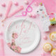 Ooh La La Paris Bridal Shower paper plates with pink florals and eiffel tower and scripted calligraphy lettering.