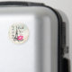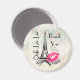 A thank you magnet with a lovely vintage pattern background with faint roses and other decorative elements. Layered over top is an illustration of the eiffel tower and Ooh La La written sideways. A hot pink lipstick impression left beside the famous landmark with the text xoxo!