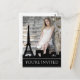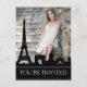 This beautiful modern birthday invitation postcard allows you to add your own photo behind the Paris skyline complete with the Eiffel tower. It features a sophisticated black and white color scheme.