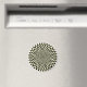 A two toned circular Op Art style design which is made up of circles of rays, each offset to create an alternating pattern.
