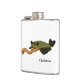 Well made flask, a little better than I had expected. Flask came in clear plastic box which gave it a nice presentation when I took it out of the zazzle packaging. Image is not printed on flask but on sticker. Don't know how this will hold up I haven't used it yet. This would make a Great gift! I plan to purchase more for friends! Cheers. I thought a little brighter than computer. Very crisp, writing wasn't