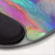 The plastic backing is nice and sturdy. The grippy pads underneath keep the mouse pad where I put it on my table. The pad the mouse sits on is cut well to fit the backing. The wrist pad is perfectly soft, supportive, and thick. I'm left-handed, and this mouse pad works just as well for me as it does for my right-handed friends. I'm the designer of HippieClecticHope products. I'm blown away by how well my intricate fractals turn out on the tangible items in the Zazzle Marketplace. This particular mouse pad ***appears*** like a 3D object... A mathematically-engineered rainbow black opal, inlaid under transparent fabric...