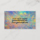 The opal is set against a colorful, textured opal background. This background features a mix of iridescent hues, including blues, pinks, and yellows, with small, sparkling inclusions that resemble tiny gemstones or crystals.