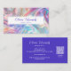 Modern and stylish, this opal iridescent business card, featuring your name in chic script calligraphy on the front and a vibrant violet background on the back. An excellent way to impress your clients with a unique design and make the right impact to be remembered. This contemporary layout is perfect for any professional like a makeup artist, nail specialist, hair stylist, beauty salon owner, esthetician, beautician and more. Personalize the front with your name and title (or website address) and include your name, title, phone number, email, website address, social media accounts, and a scannable QR code on the back.