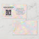 Elevate your professional image with this minimalist opal QR code business card. Featuring a soft iridescent background and clean, modern layout, this design blends elegance and functionality. The subtle pastel shimmer adds refinement, while the QR code provides quick access to your website, booking page, or digital contact info. Perfect for entrepreneurs, consultants, creatives, and stylists seeking a polished, tech-forward look. Fully customizable and print-ready.