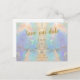 This elegant wedding save the date invitation postcard is decorated with an image of the beautiful multi-colors of aquamarine blue, pink, peach and sea foam green in a precious opal. Text is in non-metallic golden yellow.