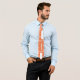 This tie has a mid-century modern design of open and closed rectangles in white on a field of orange.