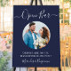 Open Bar Custom Photo Navy Blue Wedding Drinks Foam Board