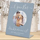 Open Bar ! Simple yet elegant calligraphy, this wedding bar sign features Open bar in elegant calligraphy, and Drinks are on us. Customize this elegant wedding sign with your favorite pet photo, dog photo, engagement photo or couple photo, names and date! COPYRIGHT © 2020 Judy Burrows, Black Dog Art - All Rights Reserved. Open Bar Personalized Dusty Blue Pet Dog Wedding Pedestal Sign