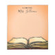 Personalized teacher notepad with an open book illustration across the bottom. Add your name for a unique, educational classroom tool or thoughtful teacher gift.