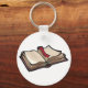 This design is an open book. The book is open with a red ribbon bookmark. This open book design looks great on this Keychain
