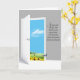 Open white door to a field of sunflowers with butterflies for general sympathy.