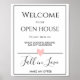 Welcome potential buyers with this bright and inviting real estate open house poster featuring a blue and pink heart design. With the friendly message, “Welcome to our Open House – please sign in, enjoy looking around, ask any questions, fall in love and make an offer,” this poster sets a warm, professional tone for every showing.