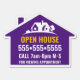 Created in large easy to read print, Welcoming house icon above this OPEN HOUSE SIGN garners attention for possible clients - change the color of this full house shaped silhouette - change the text colors if you like - we chose royal purple and white with gold and white text for that bold eye catching appeal - (text color on back is the same but reversed ) - all text is customizable - same design on both sides -