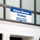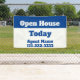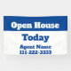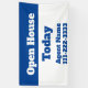 This real estate open house banner has display text says "Open House Today" but you can change the wording as needed. At the bottom, there's a place to add the real estate agent's name and phone number. The top portion is blue. The rest of the banner is white. All text can be edited or deleted.